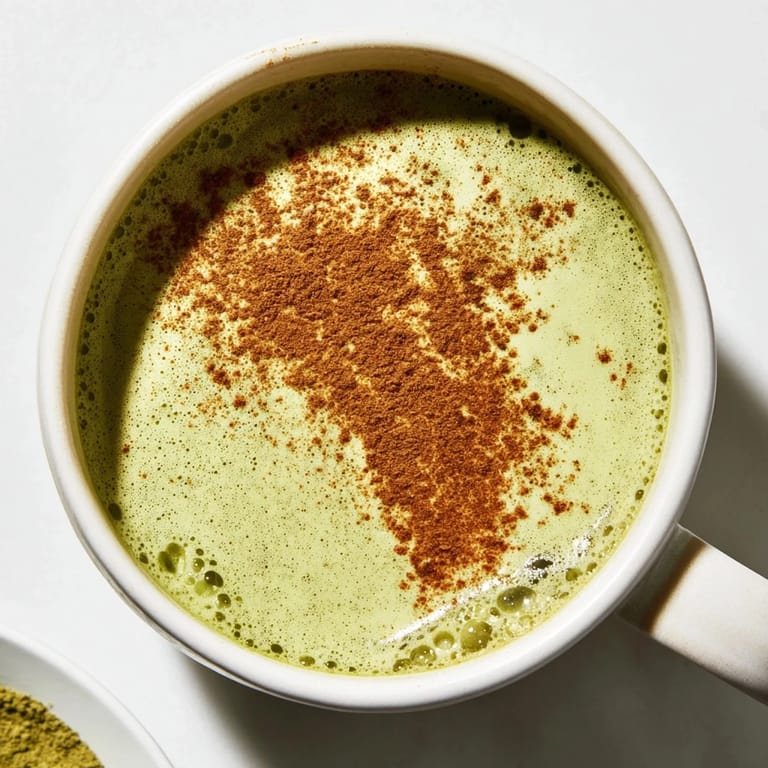 Pin A creamy, dairy-free matcha latte sweetened with pure maple syrup and infused with warming cinnamon, perfect for cozy mornings or an afternoon pick-me-up.