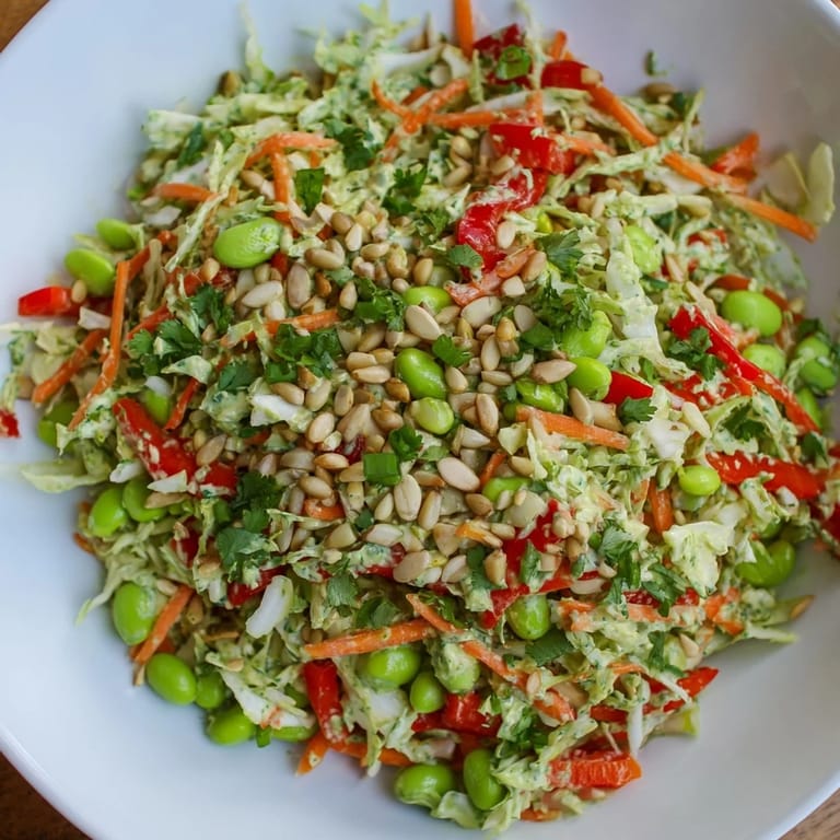 Pin There's something about a bowl of bright, crunchy vegetables that stops me mid-morning. I discovered this salad on a sweltering July day when my fridge felt full of promise but my energy felt completely flat. My neighbor brought over a container of fresh edamame from her garden, and I suddenly wanted to build something that tasted like vitality itself—cool, textured, and alive with flavor.