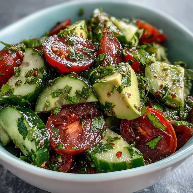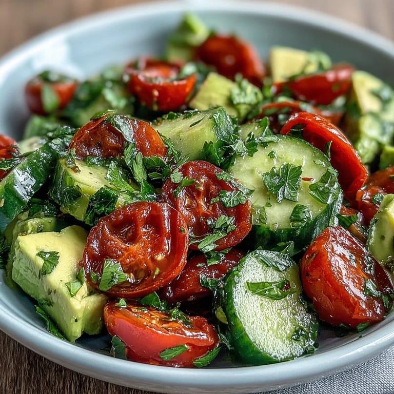Pin There's something magical about a salad that delivers crunch, creaminess, and brightness all in one bowl. This Cucumber Tomato Avocado Salad with Lemon Dressing is exactly that—a celebration of fresh, vibrant ingredients that come together in minutes. Crisp cucumber, juicy cherry tomatoes, and buttery avocado are tossed in a zesty lemon dressing that's both tangy and smooth. Whether you're looking for a quick lunch or a colorful side dish to complement your main course, this salad brings flavor and nutrition to the table without any fuss.