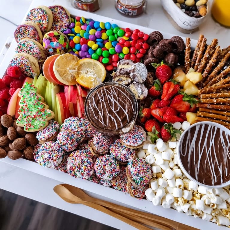 Pin A festive, visually stunning arrangement of sweet treats and themed snacks, perfect for holidays or game nights. This customizable dessert board brings together a variety of flavors, textures, and colors for a memorable sharing experience.
