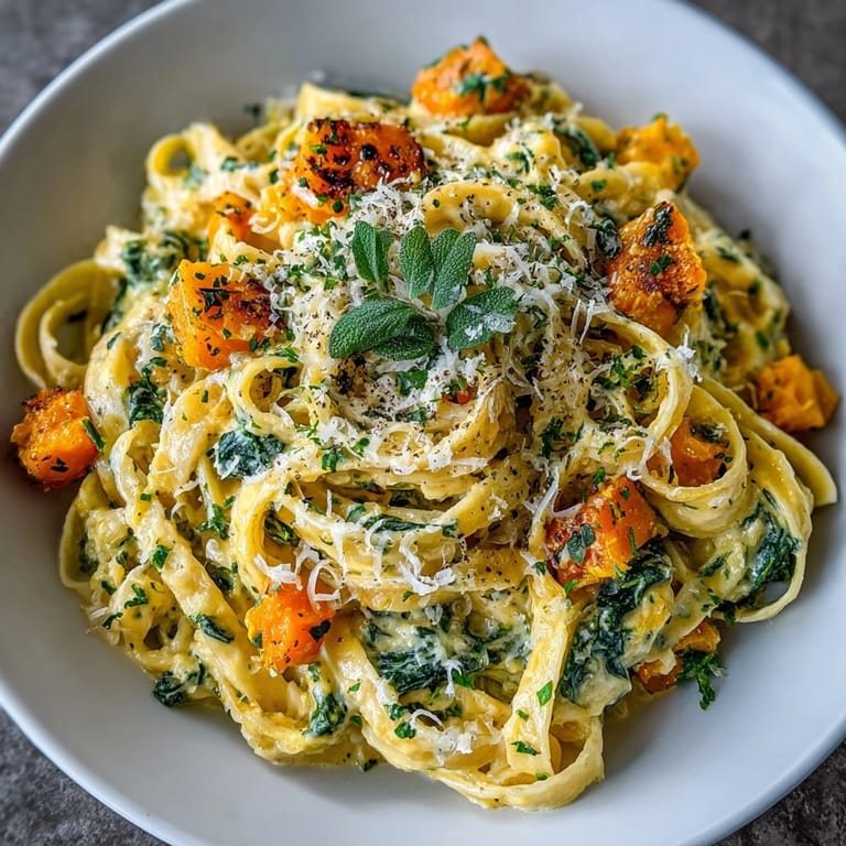 Pin This hearty Fall Harvest Pumpkin Alfredo Pasta transforms seasonal pumpkin into a velvety, indulgent sauce that coats every strand of pasta with autumn's warmth. The marriage of traditional Alfredo creaminess with sweet roasted pumpkin creates a comforting dish that celebrates fall's bounty in every bite.