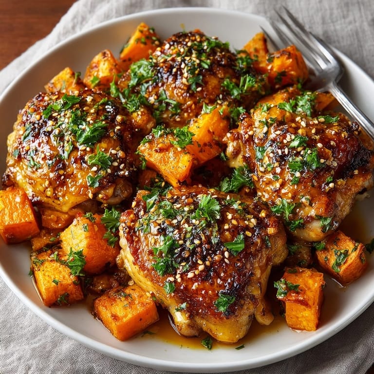 I first created this recipe during a particularly busy week when I needed something impressive yet simple. My family was so captivated by the sticky honey garlic glaze that it's now in our regular rotation. The way the sweet potatoes soak up the savory chicken juices and sauce is truly magical.