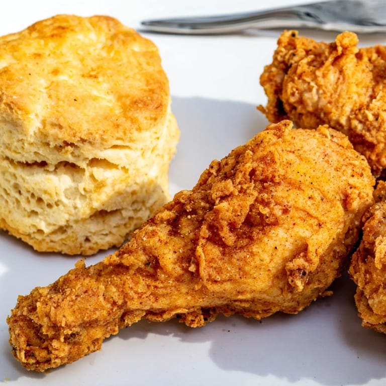 I remember the first time I made this dish on a rainy Sunday evening. The kitchen filled with the irresistible aroma of frying chicken and freshly baked biscuits, and everyone gathered around the table for seconds.