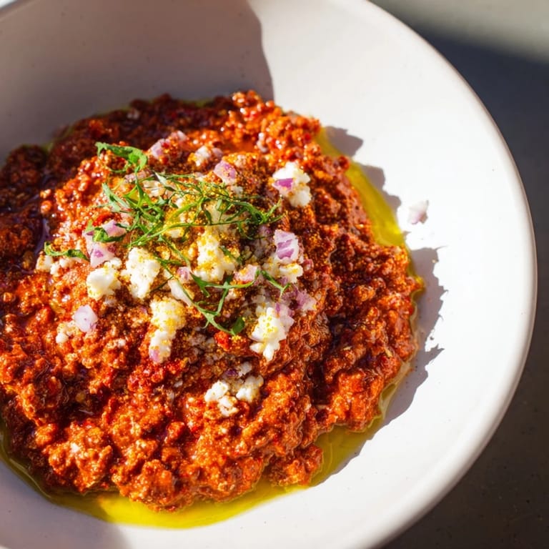 Pin A bold, fiery dip bursting with roasted peppers, smoked paprika, and spicy chilies, perfect for adding excitement to any platter.
