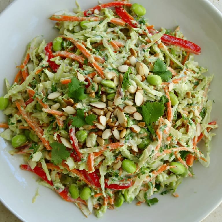 Pin There's something about a bowl of bright, crunchy vegetables that stops me mid-morning. I discovered this salad on a sweltering July day when my fridge felt full of promise but my energy felt completely flat. My neighbor brought over a container of fresh edamame from her garden, and I suddenly wanted to build something that tasted like vitality itself—cool, textured, and alive with flavor.