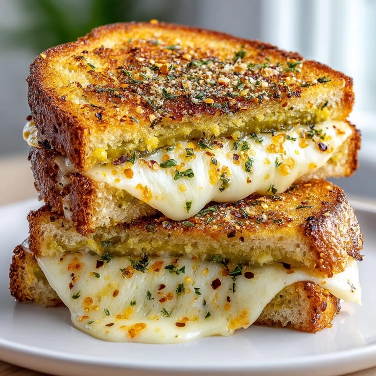 Pin This crispy sourdough sandwich combines the tangy kick of dill pickles with melty cheese and pizza seasonings for a fusion that satisfies multiple cravings at once. The contrast between the crunchy exterior and gooey interior creates the ultimate comfort food experience with an unexpected twist.